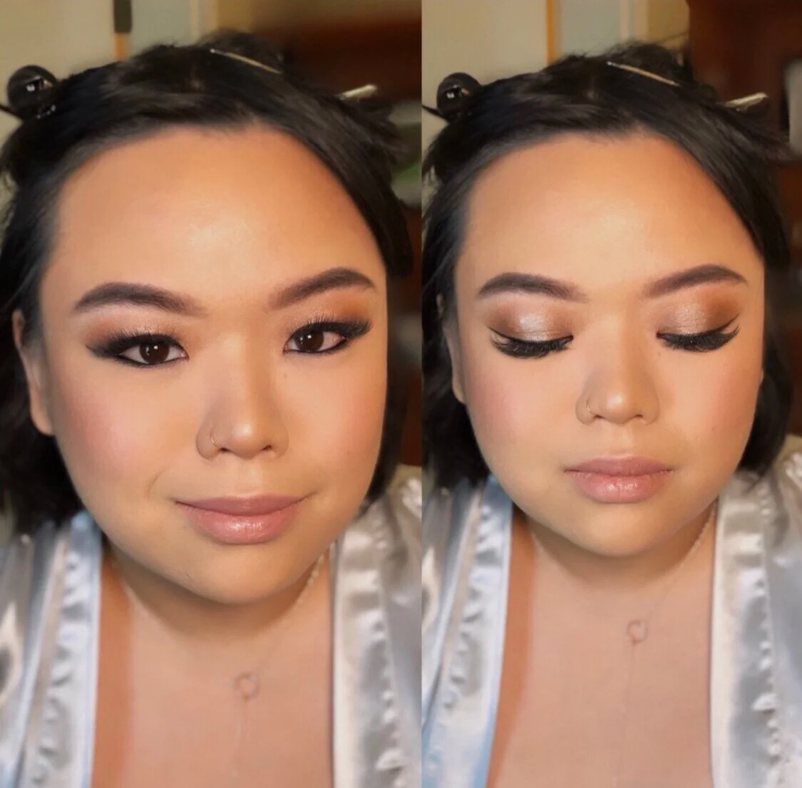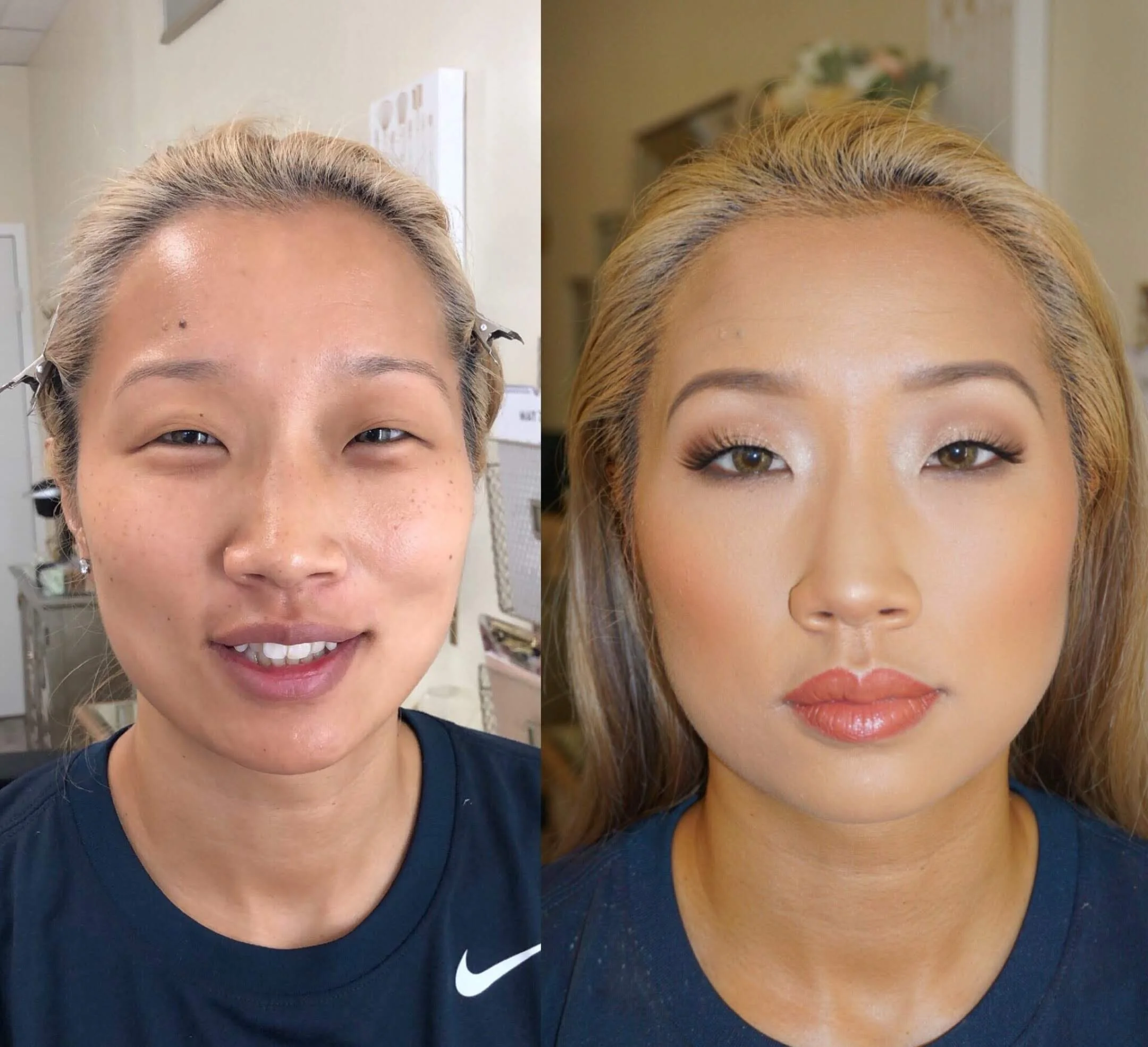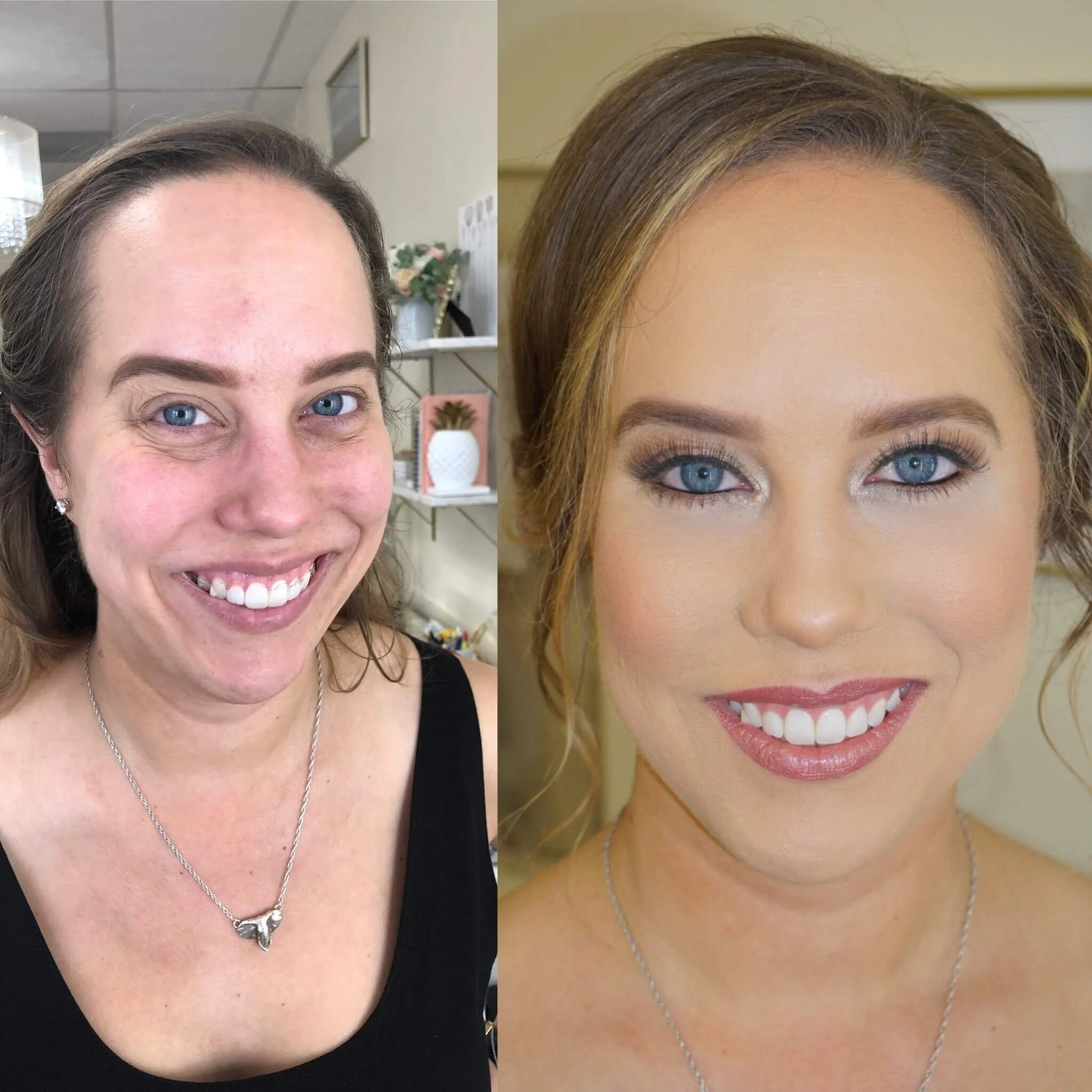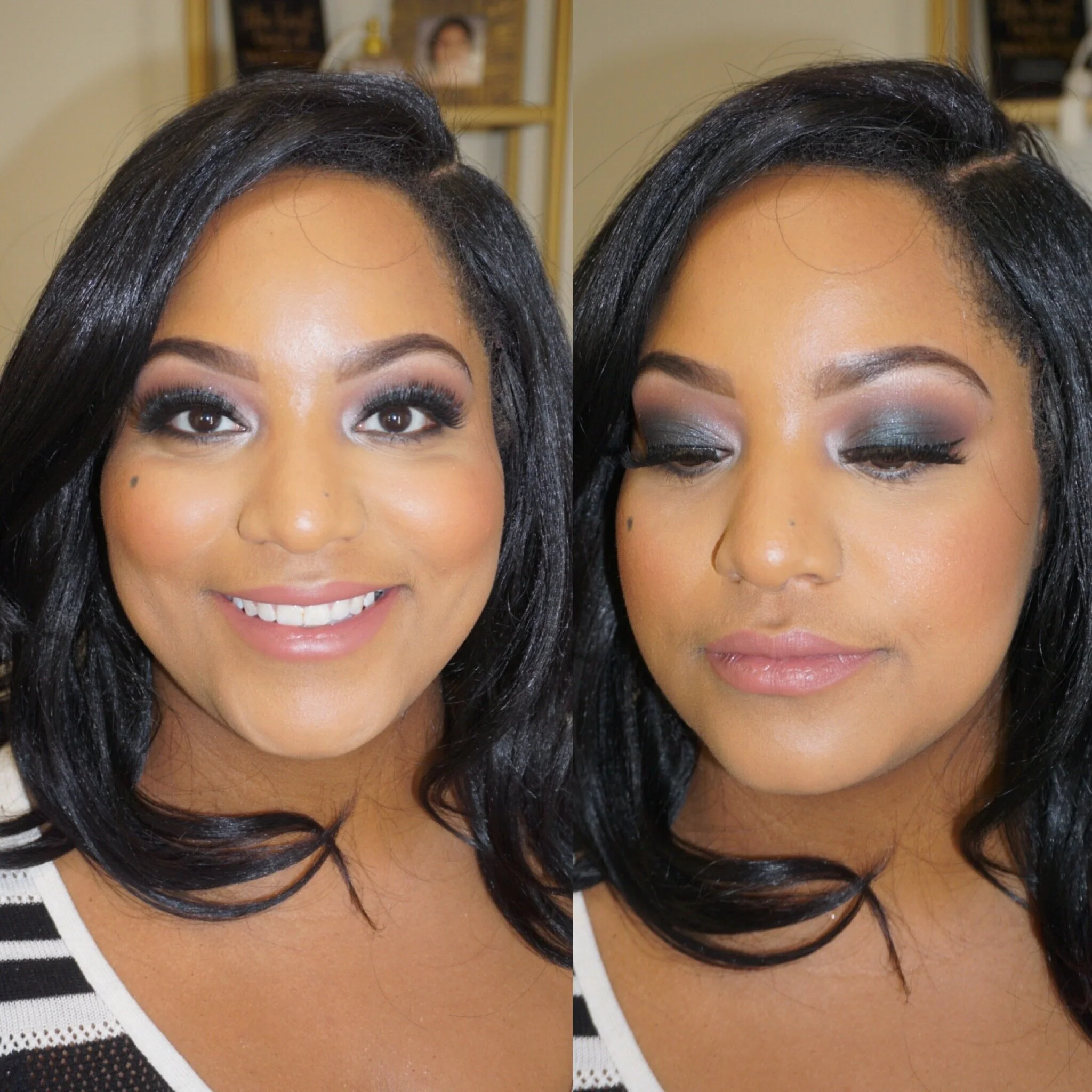 Who doesn’t love a good before and after picture? Book one of our makeup artists and/or stylist for your next event. We service the Washington DC, Maryland, Virginia, and South Florida area. We travel to your location of choice or we would love to host you and any others for your event in our studio located in Germantown, Maryland. For more information please visit our DMV WEDDING PRICING, FLORIDA WEDDING PRICING, or EVENT PRICING page.